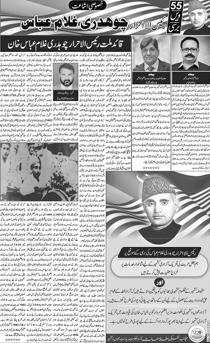 رئیس الاحرار چوہدری غلام عباس کی 55ویں برسی