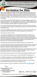 اے جے کے سینٹرل بلڈ ٹرانسفیوژن سروس، ریجنل بلڈ سروسز (آر بی سی) مظفر آباد میں آلات اور اوزار کی مرمت اور کنزیوم ایبل آئیٹمز برائے سال 2021-22 خریداری کے لیے سربمہر پیشکشیں مطلوب ہیں