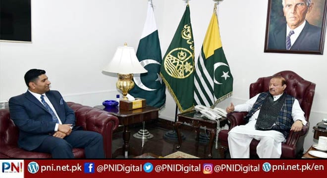 اسلام آباد (پی این آئی) صدر آزاد جموں وکشمیر بیرسٹر سلطان محمود چوہدری سے ایوان صدر کشمیر ہاؤس اسلام آبادمیں برطانوی ہاؤس آف لارڈز کے ممبر لارڈ واجد خان کی تفصیلی ملاقات۔ اس موقع پر صدر ریاست آزاد جموں وکشمیر بیرسٹر سلطان محمود چوہدری اور لارڈ واجد خان نے مسئلہ کشمیر کی موجودہ صورت حال اور عالمی سطح پر کشمیر ایشو کو اجاگر کرنے کے حوالے سے مختلف امور میں تبادلہ خیال کیا گیا۔
