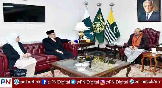 اسلام آباد (پی آئی ڈی آزاد کشمیر) صدر آزاد جموں وکشمیر بیرسٹر سلطان محمود چوہدری سے ملائشیاء کے ممبر پارلیمنٹ داتوک استاذ حاجی حسن الدین بن محمد یونس کی ایوان صدر کشمیر ہاؤس میں تفصیلی ملاقات۔ اس موقع پر ملائشیاء کے ممبر پارلیمنٹ داتوک استاذ حاجی حسن الدین بن محمد یونس کی اہلیہ شریفہ مائزہ بنت سید عبد القادر بھی اُن کے ہمراہ تھیں۔
