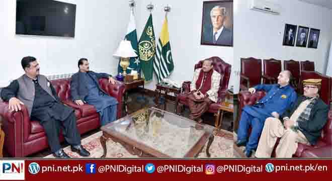 صدر آزاد کشمیر سے ممبران کشمیر کونسل یونس میر، سردار رزاق خان، شجاع راٹھور اور طارق سعید کی ملاقات، اہم آئینی امور پر بات چیت