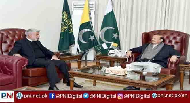 مظفرآباد (پی آئی ڈی) صدر آزاد جموں وکشمیر بیرسٹر سلطان محمود چوہدری سے چیف جسٹس آزاد جموں وکشمیر ہائیکورٹ صداقت حسین راجہ کی ایوان صدر مظفرآباد میں تفصیلی ملاقات۔