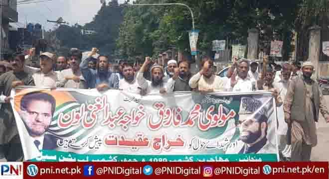 مظفرآباد (آئی اے اعوان) بھارت کے زیر قبضہ کشمیر میں جدجہد آزادی کے عظیم شہداء میر واعظ مولوی محمد فاروق, اورخواجہ عبدالغنی لون سمیت دیگر شہداء کو خراج عقیدت پیش کرنے کیلئے آزادکشمیر کے دارالحکومت مظفرآباد میں سیمینارکا انعقاد کیا گیااور ریلی نکالی گئی ۔