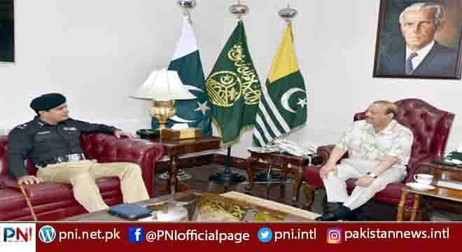 اسلام آبا د (پی این آئی) صدر آزاد جموں وکشمیر بیرسٹر سلطان محمود چوہدری سے انسپکٹرجنرل پولیس آزادکشمیر امیراحمد شیخ کی ایوان صدر کشمیر ہاؤس اسلام آباد میں تفصیلی ملاقات۔