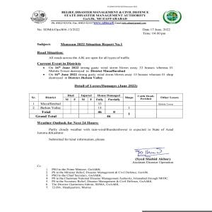سٹیٹ ڈیزاسٹر مینجمنٹ اتھارٹی کے اسسٹنٹ ڈائریکٹر آپریشن سید شاہد اکبر کی جانب سے جاری کیے گئے اعدادوشمار کے مطابق گزشتہ روز مظفرآباد میں آندھی کے باعث33 مکانات تباہ ہوئے جبکہ ایک موبائل فون کمپنی کا ٹارو بھی گر کر تباہ ہوگیا جہلم ویلی میں 13 مکانات اور ایک دکان مکمل طور پر تباہ ہوئی