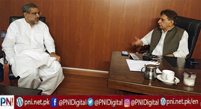 اسلام آباد (آئی اے اعوان) سابق وزیراعظم پاکستان اور سینئر نائب صدر پاکستان مسلم لیگ ن جناب شاہد خاقان عباسی کی کشمیر ہائوس آمد، سابق وزیراعظم آزاد حکومت ریاست جموں وکشمیر راجہ محمد فاروق حیدر خان کے درمیان اہم ملاقات ۔ 5 اگست 2019 کے ہندوستان کے غیر قانونی اقدامات کے بعد مقبوضہ جموں وکشمیر کی صورتحال پر تبادلہ خیالات۔