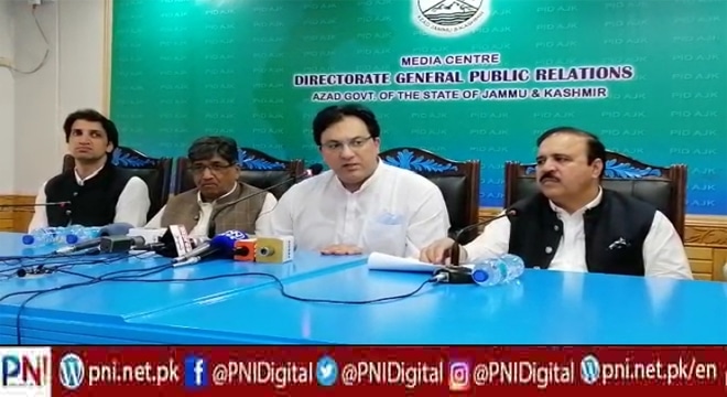 اس بات کا انکشاف آزاد کشمیر کے وزیر خزانہ عبدالماجد خان،وزیر سٹیٹ ڈیزاسٹر مینجمنٹ اتھارٹی اکبر ابرہیم اور مشیر اطلاعات چوہدری رفیق نیئر نے آزاد کشمیر کا بینہ کے اجلاس میں کیے گئے فیصلوں سے متعلق مشترکہ پریس کا نفرنس سے کے دوران کیا وزراء کا کہناتھاکہ کوئی ایساڈرافٹ ریاست جموں وکشمیر کے عوام کے مفاد کے منافی ہو اس پر سمجھوتہ نہیں کریں گے وزیر حکومت چوہدری اکبر ابراہیم نے واضح کیاکہ ہم اپنی جانیں دے دیں گے لیکن مقبوضہ کشمیر کی آزادی تک پیچھے نہیں ہٹیں گے اور نہ ہی آزاد کشمیر صوبہ بنے گا۔وزیر خزانہ عبدالماجد کہا کہ حکومت پاکستان نے ملازمین کی تنخواہوں،ڈسپیرٹی اونس اور پنشن کے اضافہ کی مد میں ساڑھے 14 ارب روپے دینے کی تحریری یقین دہانی کروارکھی ہے اور اب یہ رقم دینے سے لیت ولعل کا مظاہرہ کیاجارہاہے