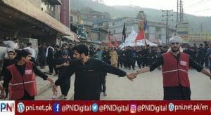 آزاد کشمیر کے دارالحکومت مظفرآباد میں بیلہ نورشاہ سے پولیس اور حسینی رضاکاروں کے سخت سیکورٹی حصار میں عصر کے وقت برامد ہواجو بس اسٹینڈ نیلم پل سی ایم ایچ روڈ سے ہوتا ہوا مرکزی امام بارگاہوں پیر علم شاہ بخاری پہنچ کر نماز مغرب سے قبل اختتام پذیر ہوا
