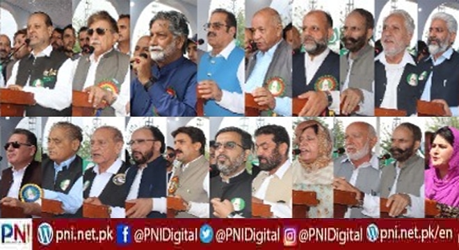 ان کا مزید کہنا تھا کہ کشمیریوں کا مقدمہ ہم نے لڑنا ہے، نیلہ بٹ جلسہ سے خطاب کرتے ہوئے کہنا تھا کہ مسائل کی آڑ میں آزاد کشمیر میں پاک فوج اور قومی سلامتی کے اداروں کے خلاف منفی پروپیگنڈے کی اجازت نہیں دی جا سکتی، اداروں کو بھی یہ سوچنا چاہیے،کہ وہ کون سے عوامل ہیں کہ جنکی ایماء پر ایسا کیا جا رہا ہے، ایک نظریہ سے تعلق رکھنے والی سیاسی قیادت اور لوگوں کو ملکر پاکستان مخالف سازشوں کا مقابلہ کرنا ہو گا، جلسہ سے خطاب کرتے ہوئے مقررین کا کہنا تھا کہ مجاہد اول سردار محمد عبدالقیوم خان کے نظریہ کشمیر بنے گا پاکستان پر کوئی آنچ نہیں آنے دیں گے، آزاد کشمیر کی سیاسی اور حریت قیادت کے دستخطوں سے جاری کیے گئے علامیہ میں مقبوضہ کشمیر کی حریت قیادت اور بھارتی جارحیت کا مقابلہ کرنے والے کشمیریوں سے یکجہتی کا اظہار کرتے ہوئے عالمی برادری سے مطالبہ کیا کہ یسین ملک کی غیر قانونی گرفتاری اور انسانی حقوق کی پامالیوں کا نوٹس لیں۔۔۔۔