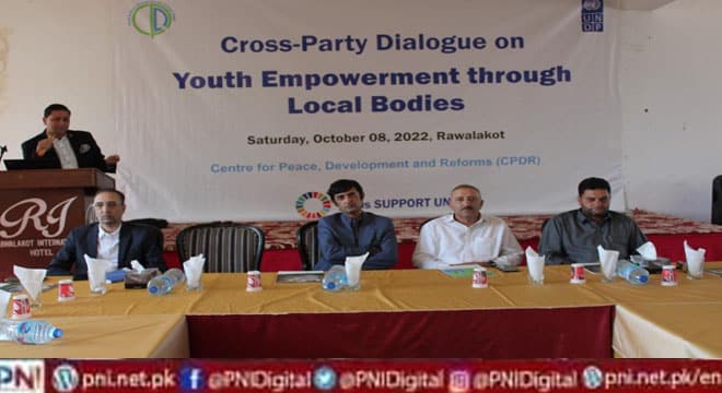 راولاکوٹ (پی این آئی) پاکستان تحریک انصاف (پی ٹی آئی)، پاکستان مسلم لیگ (پی ایم ایل این)، پاکستان پیپلز پارٹی (پی پی پی)، جماعت اسلامی، اور آل جموں و کشمیر مسلم کانفرنس کی لیڈرشپ اور سول سوسائٹی کے نمائندوں نے متفقہ طور پر آزاد جموں و کشمیر میں اس سال نومبر کے آخر تک ہونے والے بلدیاتی انتخابات کے انعقاد کا خیرمقدم کیا۔ سنٹر فار پیس، ڈیولپمنٹ اینڈ ریفارمز (سی پی ڈی آر) کے زیر اہتمام یو این ڈی پی کے تعاون سے مقامی حکومتوں کے نظام میں خواتین اور نوجوانوں کے کردار پر ایک آل پارٹی ڈائیلاگ سے خطاب کرتے ہوئے،
