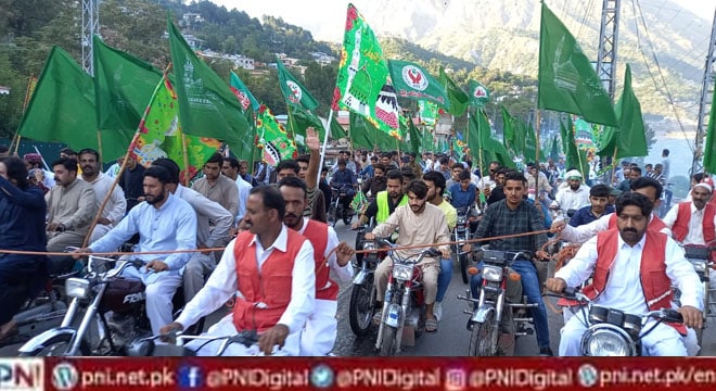 ریلی سنٹرل پلیٹ قلعہ روڈ سے چہلہ اور سماں بانڈی سے ویسٹرن بائی پاس سے گزرتے ہوئے نلوچھی پل ، گھڑی پن چوک ، طارق آباد بائی پاس روڈ کے گزرتے ہوئے عیدگاپہنچ کر اختتام پذیر ہوگئی