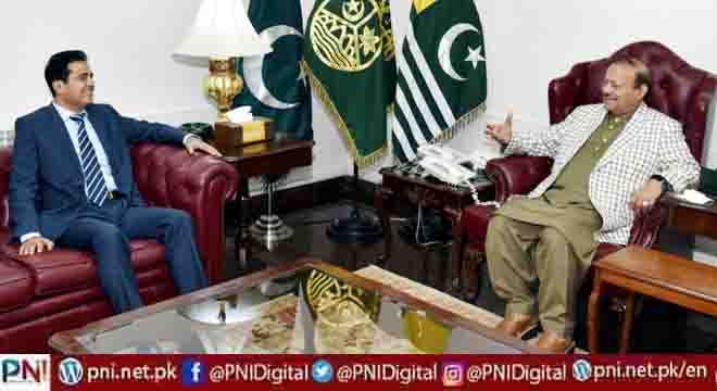 مظفر آباد(پی آئی ڈی )صدرریاست آزادجموں و کشمیر بیرسٹر سلطان محمود چوہدری سے انسپکٹر جنرل آزادجموں وکشمیر پولیس امیر احمد شیخ کی ایوان صدر کشمیر ہاؤس اسلام آباد میں تفصیلی ملاقات۔ اس موقع پر ملاقات میں انسپکٹر جنرل آزادجموں وکشمیر پولیس امیر احمد شیخ نے صدر ریاست آزادجموں وکشمیر بیرسٹر سلطان محمود چوہدری کو آزادکشمیر میں بلدیاتی انتخابات کے صاف اور شفاف انعقاد کے لئے سکیورٹی کے حوالے سے تفصیلی بریفنگ دی۔