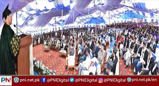 اس موقع پر میں والدین کو بھی آپ لوگوں کی کامیابی پر مبارکباد پیش کرتا ہوں اور اس امید کا اظہار کرتا ہوں کہ یہاں سے ڈگری لینے والے طلبا و طالبات عملی زندگی میں معاشرے کے ایک مفید شہری ثابت ہونگے۔ اس موقع پر وائس چانسلر یونیورسٹی آف کوٹلی پروفیسر ڈاکٹر رحمت علی نے سپاسنامہ پیش کرتے ہوئے صدر ریاست آزادجموں وکشمیر و چانسلر بیرسٹر سلطان محمود چوہدری کو یونیورسٹی آمد پر خوش آمدید کہتے ہوئے شکریہ ادا کیا۔ اس موقع پر وائس چانسلر یونیورسٹی آف کوٹلی پروفیسر ڈاکٹر رحمت علی نے سپاسنامہ میں یونیورسٹی میں جاری پروگرامز، پروجیکٹس، تعلیمی سرگرمیوں، ہم نصابی سرگرمیوں پر تفصیلی روشنی ڈالتے ہوئے بتایا کہ آج یہاں کوٹلی یونیورسٹی کے چوتھے کانوووکیشن میں 1033طلبا و طالبات کو ڈگریاں دی جا رہی ہیں جبکہ اسی طرح پہلی پوزیشن حاصل کرنے والے 32طلبا و طالبات کو گولڈ میڈلز بھی دئیے جا رہے ہیں۔ اس موقع پر صدر ریاست آزاد جموں وکشمیروچانسلر بیرسٹر سلطان محمود چوہدری نے کامیاب ہونے والے طلبا و طالبات میں ڈگریاں تقسیم کیں جبکہ نمایاں پوزیشن حاصل کرنے والے طلباو طالبات کو گولڈ میڈلزدئیے۔ اس موقع پروائس چانسلر جامعہ کوٹلی پروفیسر ڈاکٹر رحمت علی نے صدر ریاست آزاد جموں وکشمیر بیرسٹر سلطان محمود چوہدری کو ادار ے کی اعزازی شیلڈ بھی دی۔ ۔۔۔