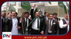 مظفرآباد (پی این آئی) 9 مئی کو پاکستان میں پاک فوج کی تنصیبات پر پی ٹی آئی کے کارکنوں کے حملوں کے خلاف آزاد کشمیر کے وکلاء بھی سڑکوں پر نکل آئے ۔۔۔مظفرآباد میں سینٹرل بارایسوسی کے زیراہتمام پاک فوج سے یکجہتی کیلئے پاک فوج زندہ باد ریلی نکالی گئی ۔۔۔مرکزی ایوان صحافت مظفرآباد سے آزادی چوک تک نکالی گئی۔۔۔ ریلی میں شریک وکلاء نے پاک فوج زندہ باد کے نعرے لگائے۔۔۔