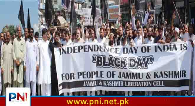 مظفرآباد (پی آئی ڈی) بھارت کے یوم آزادی کو کشمیریوں نے یوم سیاہ کے طور پر منایا۔جموں وکشمیر لبریشن کمیشن کے زیر اہتمام یوم سیاہ کے موقع پر مظفرآباد میں برہان وانی چوک تا گھڑی پن احتجاجی ریلی کا انعقاد کیا گیا۔ ریلی کی قیادت وزیر حکومت چوہدری محمد رشید، سیکرٹری جموں وکشمیر لبریشن کمیشن واطلاعات انصر یعقوب،وائس چیئرمین پاسبان حریت مشتاق السلام ودیگرنے کی۔احتجاجی ریلی میں سیاسی قیادت، ملازمین، تاجر تنظیموں کے عہدیداران،مہاجرین اور سول سوسائٹی کے نمائندوں نے شرکت کی۔