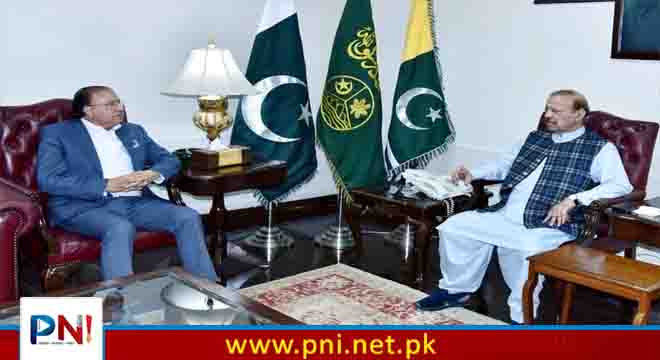 اسلام آباد ( پی این آئی) صدر آزاد جموں وکشمیر بیرسٹر سلطان محمود چوہدری سے چیف جسٹس آزاد جموں وکشمیر سپریم کورٹ راجہ سعید اکرم کی ایوان صدر کشمیر ہاؤس اسلام آباد میں تفصیلی ملاقات۔