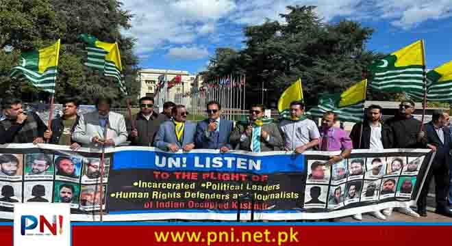 جینوا (پی آئی ڈی) جنیوا میں اقوام متحدہ کے دفتر کے سامنے کشمیری وفداوردیگر مندوبین کا احتجاج ،تنازعہ کشمیر کے جلد حل، مقبوضہ کشمیر میں انسانی حقوق کی خلاف ورزیوں کے خاتمے کا مطالبہ ۔بھارتی مقبوضہ جموں و کشمیر میں تیزی سے بگڑتی سیاسی اور انسانی حقوق کی صورتحال کی طرف دنیا کی توجہ مبذول کرانے کے لیے اقوام متحدہ کے دفتر کے سامنے پرامن احتجاجی مظاہرہ کیا گیا۔