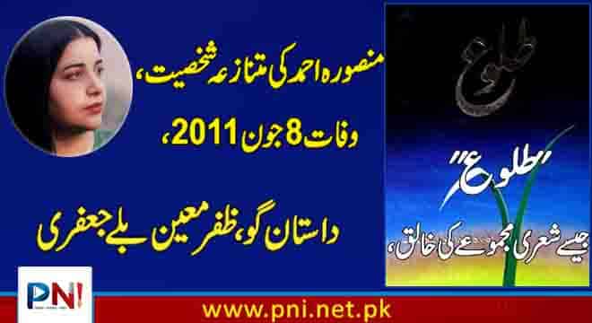 “طلوع” جیسے شعری مجموعے کی خالق، منصورہ احمد کی متنازعہ شخصیت، وفات 8 جون 2011، داستان گو، ظفر معین بلے جعفری