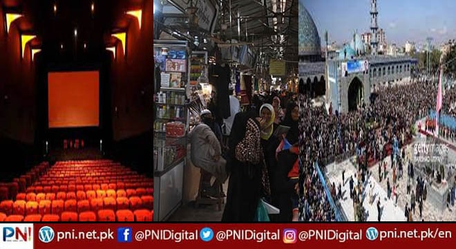 پاکستان میں کورونا وائرس کو پھیلنے سے روکنے کے لیے قائم کیےگئے نیشنل کمانڈ اینڈ آپریشن سینٹر کی سفارش پر حکومتِ سندھ نے بندشیں ختم کرنے کا نوٹیفکیشن جاری کر دیاہےفیصلے کے مطابق صوبے بھر میں موجود مزارات پر بھی کورونا وائرس کی ویکسین لگوانے والوں کو جانے کی اجازت ہو گی، تاہم ماسک کا استعمال لازمی ہو گا۔سندھ میں شادی کی اِن ڈور تقریبات میں 300 مہمانوں کو جبکہ آؤٹ ڈور تقریب میں 500 افراد کو شرکت کی اجازت دینے کا فیصلہ بھی کیا گیا ہے۔نوٹیفکیشن کے مطابق صوبے بھر میں ریسٹورنٹس اور بازاروں کے اوقات کار برقرار رہیں گے، سینما ہال رات 1 بجے تک کھولے جا سکیں گے، جہاں صرف ویکسین لگوانے والےافراد جا سکیں گے۔۔۔۔۔
