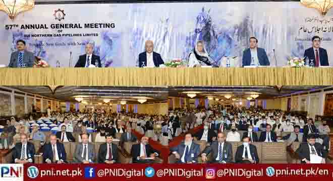 لاہور (پی این آئی) سوئی ناردرن گیس پائپ لائنز لمیٹڈ (ایس این جی پی ایل) کے حصہ دار ان کا 57 واں سالانہ اجلاسِ عام جمعہ29 جولائی 2022 کو پرل کانٹی نینٹل ہوٹل، لاہور میں منعقد ہوا۔کمپنی کے حصہ داران نے مالی سال 2020-21 کے سالانہ گوشواراجات کی منظوری دی جس میں تقریباً 11 ارب روپے کے منافع بعد از محاصل حا صل ہواجس کے نتیجے میں فی حصہ منافع 17 روپے 32 پیسے ہوا۔حصہ داران کی جانب سے سوئی ناردرن گیس پائپ لائنز لمیٹڈکے بورڈ آف ڈائریکٹرز کی سفارشات پر 5.00 روپے فی حصہ منافع کی منظوردی گئی جو کے 20 فیصد یعنی 2.00 روپے فی حصہ نقد منافع کے علاوہ ہے جو پہلے ہی 31 دسمبر 2020 ؁ء کو ختم ہونے والی مدت کے لئے ادا کیا جا چکا ہے۔مزید برآں کمپنی کے حصہ داران نے میسرز یوسف عادل، چارٹرڈ اکاؤنٹنٹس کو مالی سال 2021-22 کے لیے بطور پٹرتال کنندہ دوبارہ مقرر کر دیا۔
