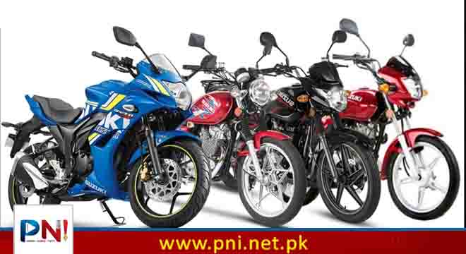اٹلس ہونڈا کے بعد موٹر سائیکلیں بنانے والے دوسری بڑی کمپنی پاک سوزوکی نے اکتوبر 2023 کیلئے اپنی موٹر سائیکلوں کی قیمتوں کا اعلان کردیا، جس کے مطابق موجودہ قیمتیں برقرار رکھی گئی ہیں۔ پاکستان میں ڈالرز کی گرتی ہوئی قدر کے بعد صارفین توقع کررہے ہیں کہ گاڑیوں اور موٹر سائیکلوں کی قیمتوں میں بھی کمی کی جائے گی تاہم پاک سوزوکی کی جانب سے اکتوبر کیلئے قیمتوں میں کمی تبدیلی نہیں کی گئی۔ پاک سوزوکی کی جی ڈی 110 ایس کی قیمت 3 لاکھ 35 ہزار روپے، سوزوکی جی ایس ایکس 125 کی قیمت 4 لاکھ 99 ہزا روپے، سوزوکی جی ایس 150 کی قیمت 3 لاکھ 64 ہزار روپے، سوزوکی جی آر 150 کی قیمت 5 لاکھ 47 ہزار روپے پر برقرار ہیں۔