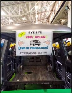 سوشل میڈیا پر اس خبر نے اس وقت زور پکڑا جب ایک نامکمل سوزوکی بولان کی تصویر سامنے آئی، جس پر ایک پوسٹر میں لکھا تھا: “بائے بائے Y88V بولان، پیداوار کا اختتام اور آخری چیسیز نمبر 01151691″۔ ایک کمپنی اہلکار نے اس خبر کی تصدیق کرتے ہوئے کہا: “ہاں، یہ آخری بیچ تھا”۔
