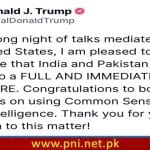 بھارتی سیکریٹری خارجہ وکرم مسری کا کہنا ہے کہ پاکستان اور بھارت میں جنگ بندی ہوگئی ہے، دونوں طرف سے فوجی کارروائیاں بھی روک دی جائیں گی۔ وکرم مسری کا کہنا ہے کہ پاک بھارت جنگ بندی ہوگئی، پاکستانی وقت کے مطابق شام 4:30 بجے […]