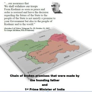 One such statement read: “Nehru had assured that once peace and order were restored in Kashmir, Indian troops would be withdrawn and the people of the state would be allowed to make their own decision. That commitment was never honoured.”