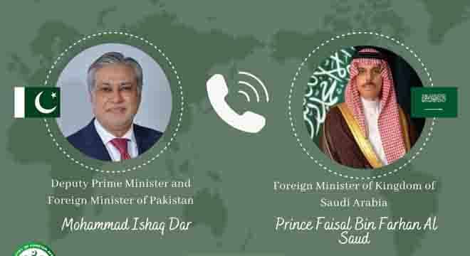 ISLAMABAD, Apr 09 (APP): Deputy Prime Minister and Foreign Minister Senator Mohammad Ishaq Dar on Thursday held telephone conversations with the Foreign Ministers of Saudi Arabia Prince Faisal bin Farhan and Azerbaijan Jeyhun Bayramov to exchange views on the evolving regional situation.