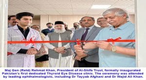 الشفاء ٹرسٹ ہاسپٹل میں پاکستان کے پہلے تھائرائڈ آئی کلینک کا آغاز۔ میجر جنرل(ر) رحمت خان نے افتتاح کیا