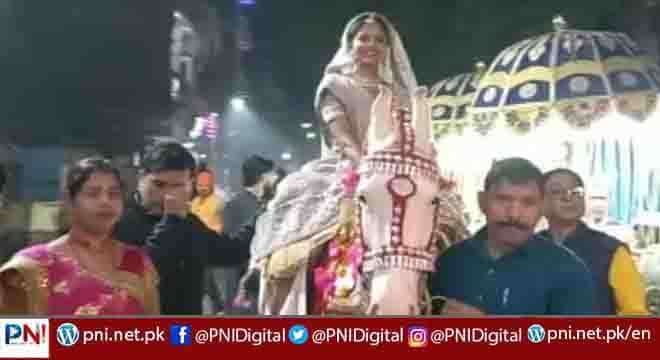 ممبئی(پی این آئی)پاکستان اور بھارت میں رواج تو یہ ہے کہ دولہا سج دھج کر باراتیوں کے ساتھ دلہن کے گھر بارات لے کر جاتا ہے لیکن اب بھارت میں اپنی نوعیت کا ایک انوکھا واقعہ پیش آیا ہے۔بارات کے ساتھ گھوڑے پر سوار ہوکر دولہا کا اپنی دلہن کے گھر جانا ایک عام روایت ہے لیکن اس روایت کو ایک دلہن نے ختم کرتے ہوئے دیکھنے والوں کو حیرت میں ڈال دیا۔
