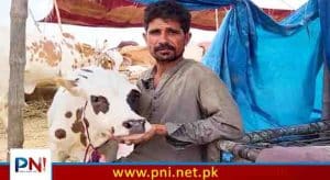 اس انوکھی گائے کے مالک ہاشم خان کا کہنا ہے کہ وہ خود سہراب گوٹھ سے آیا ہے اور یہ گائے افغانستان سے لائی گئی ہے۔۔۔۔۔ ہاشم خان کا کہنا ہے کہ یہ جانور خوبصورتی کا ایک نمونہ ہے اور اس کا نام بھولی ہے، اس کی قیمت 1 کروڑ روپے ہے ہاشم خان نے چیلنج کیا ہے کہ پوری منڈی میں اس جیسا جانور نہیں ملے گا۔۔۔۔ ہاشم خان کا کہنا ہے کہ اس جانور کی خاص بات یہ ہے کہ اس کی جوڑی نہیں ملتی اور یہ لاکھوں میں ایک ہوتا ہے۔۔۔۔۔ہاشم خان نے دعویٰ کیا ہے کہ اس گائے کی آفر 20 لاکھ اور 35 لاکھ روپے لگ چکی ہیں، کسی کے نصیب میں ہو گی تو وہ لے کر چلا جائے گا، ہاشم خان کچھ رعایت کرنے کو بھی تیار ہے، کہتا ہے کہ کوئی قدردان ا گیا تو میں یہ گائے 80 یا 85 لاکھ روپے میں بھی دے دوں گا لیکن ابھی تو کاروبار شروع ہوا ہے، آہستہ آہستہ مارکیٹ ابھی بہتر ہو گی۔۔۔۔