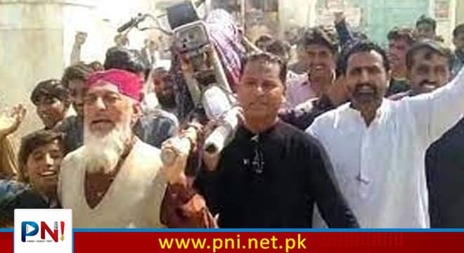 موٹر سائیکل کا علامتی جنازہ رکھ کر انوکھا احتجاجی مظاہرہ