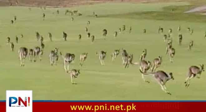 میڈیا رپورٹس کے مطابق آسٹریلیا کی ریاست وکٹوریہ میں گالف کھیلنے والے کھلاڑیوں نے اس عجیب و غریب منظر کی ویڈیو ریکارڈ کرلی جس میں کینگروز کے بڑے جھنڈ نے گالف گراؤنڈ میں بھگدڑ مچادی۔موقع پر موجود اسٹیفن روشے نامی کھلاڑی نے سوشل میڈیا پر ویڈیو پوسٹ کی جس میں کینگروز کے جھنڈ کو دکھایا گیا جو ہیریٹیج گالف اینڈ کنٹری کلب میں عین کھیل کے دوران آگیا۔اسٹیفن نے کیپشن میں لکھا کہ اس سے قبل بھی ہیریٹیج گالف اینڈ کنٹری کلب میں گالف کھیلنے کے دوران کینگروز آتے رہے ہیں لیکن میں نے پہلے کبھی اتنا بڑا جھنڈ نہیں دیکھا۔ایک دوسرے گولف کھلاڑی مائیکل میکارتھی نے اسٹیفن کی ویڈیو کے جواب میں اپنی بھی ویڈیو ڈالی جو دوسرے زاویے سے ریکارڈ کی گئی تھی۔مائیکل کا کہنا تھا کہ اتنی بڑی تعداد میں کینگروز کودتے اور بھاگتے ہوئے دیکھنے سے ایسا محسوس ہوتا تھا کہ یہ سلسلہ جیسے کبھی ختم ہی نہیں ہوگا۔