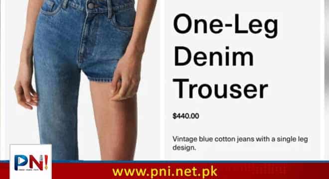 فیشن مسلسل ترقی کرتا رہتا ہے لیکن بعض اوقات ایک ایسا فیشن ابھرتا ہے جو اتنا عجیب ہوتا ہے کہ اسے عوام میں بیچنا ایک ناممکن کام لگتا ہے۔ایسا ہی ایک فیشن اس وقت سوشل میڈیا صارفین کو الجھا رہا ہے جو کہ ایک ٹانگ والی جینز ہے۔اس کی قیمت ناقابل یقین حد تک 440 ڈالرز ہے جو کہ پاکستانی 1 لاکھ 23 ہزار بنتے ہیں۔ اس کی مارکیٹنگ فرانسیسی لگژری برانڈ کوپرنی نے کی ہے۔