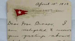 برطانیہ میں ہوئے آکشن میں ٹائی ٹینک کے مسافر کرنل آرچی بالڈ گریسی (Colonel Archibald Gracie) کا خط متوقع رقم 60 ہزار پاؤنڈ سے 5 گنا زیادہ 3 لاکھ پاؤنڈ میں فروخت ہوا۔ جہاز کے زندہ بچ جانے والے مسافر کرنل گریسی جہاز کے فرسٹ کلاس مسافر تھے اور انہوں نے ٹائی ٹینک ڈوبنے سے 5 روز پہلے 10 اپریل 1912 کو یہ خط اپنے عزیز کو لکھا جو 12 اپریل 1912 کو لندن پہنچا۔