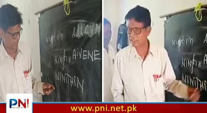 ویڈیو میں دیکھا جا سکتا ہے کہ جب استاد سے بلیک بورڈ پر ’Eleven‘ لکھنے کو کہا گیا تو انہوں نے اس کی اسپیلنگ غلط طور پر ’Aivene‘ لکھ دی، جبکہ ’Nineteen‘ (انیس) کی جگہ انہوں نے ’Ninithin‘ تحریر کیا۔ رپورٹس کے مطابق جب چھاپہ مار ٹیم نے استاد سے ان غلط اسپیلنگز کی نشاندہی کی تو ان کا حیران کن جواب تھا، “ہم بچوں کو یہی پڑھاتے ہیں۔”