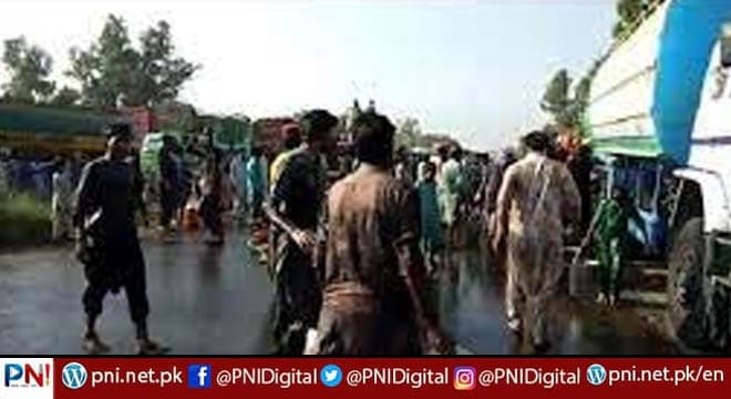 پنوعاقل (آئی این پی ) قومی شاہراہ پر تیز رفتار ٹرک کی کوکنگ آئل ٹینکر کو ٹکر، حادثے کے باعث ٹینکر سے کوکنگ آئل بہنے لگا۔ کوکنگ آئل جمع کرنے کیلئے شہریوں کی دھکم پیل ہوئی اور بھگدڑمچ گئی۔ تفصیلات کے مطابق پنوعاقل بائجی تھانے کی حدود گرڈ اسٹیشن کے قریب قومی شاہراہ پر ٹرک کی کوکنگ آئل ٹینکر کو ٹکر لگنے کے باعث آئل ٹینکر لیکیج ہو گیا جس کے باعث تیل روڈ پر بہنے لگا۔ علاقے کے افراد برتن، بالٹیاں لیکر ٹینکر کے