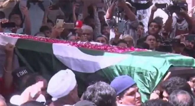 کراچی(آئی این پی)کامیڈی کنگ اور لیجنڈ اداکارعمر شریف کو حضرت عبداللہ شاہ غازی کے مزار کے احاطے میں سپرد خاک کردیا گیا۔عمر شریف کا جسد خاکی حضرت عبداللہ شاہ غازی کے مزار کے احاطے میں لایا گیا تو مزار کے اطراف سیکیورٹی الرٹ جبکہ مزار جانے والا حصہ بھی بند کردیا گیا، تدفین کے عمل میں صرف اہلِ خانہ، قریبی عزیز اور چند اہم شخصیات نے حصہ لیا۔اس سے قبل عمر شریف کی نمازجنازہ سیلانی ویلفیئر کے
