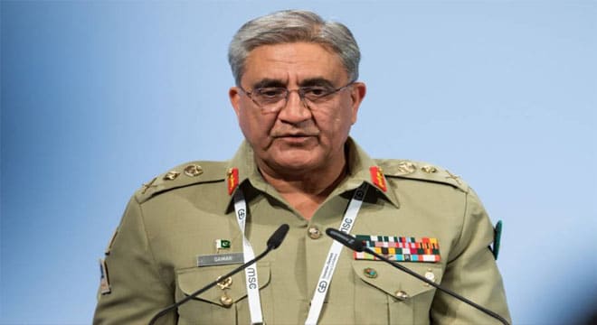 اتوار کو پاک فوج کے شعبہ تعلقات عامہ(آئی ایس پی آر)کے مطابق آرمی چیف جنرل قمر جاوید باجوہ نے دبئی انٹرنیشنل کرکٹ سٹیڈیم میں بھارت کو ٹی 20ورلڈ کپ میں پہلی مرتبہ عبرتناک شکست دینے پر پاکستانی ٹیم کو مبارکباد دیتے ہوئے کہا کہ ٹیم نے ٹی 20ورلڈ کپ میں بھارت کے خلاف زبردست کامیابی حاصل کی اورپاکستانی ٹیم نے ہمارا سر فخر سے بلند کردیا ہے۔