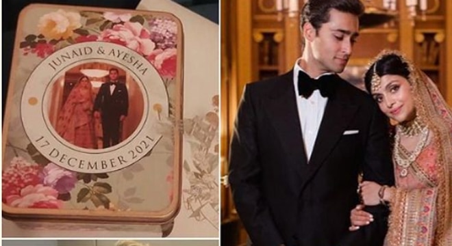 ولیمے کا ہے۔ وائرل کارڈ کے اوپر جنید صفدر اور ان کی اہلیہ عائشہ سیف کے نکاح کی تصویر بھی موجود ہے جب کہ کارڈ پر ولیمے کی تاریخ بھی اگلے ماہ 17 دسمبر درج کی گئی ہے۔واضح رہے کہ جنید صفدر اور عائشہ سیف کا نکاح 22 اگست کو لندن میں ہوا تھا اور سوشل میڈیا پر اِن کے نکاح کی تصاویر اور ویڈیوز خوب وائرل ہوئی تھیں۔