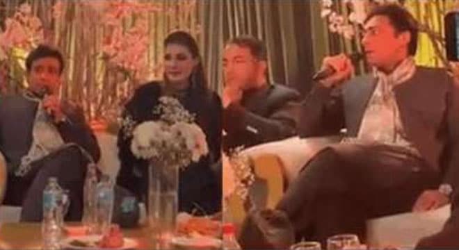 اسلام آباد (پی این آئی)پاکستان مسلم لیگ ن کے نائب صدر مریم نواز کے بیٹے جنید صفدر کی شادی کی خوشی میں ایک تقریب منعقد کی گئی جس میں پارٹی لیڈران سمیت دیگر نے شرکت کی ۔ اس خوشی کے موقعے پر حمزہ شہباز نے اپنی آواز کا جادو جگا کر سب کو حیران کر دیا ۔