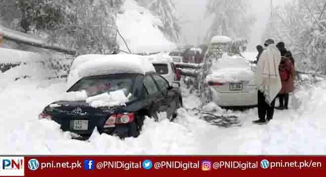 ایبٹ آباد، ایوبیہ، ڈونگا گلی، ٹھنڈیانی ، نتھیا گلی میں ایک فٹ تک برف پڑ چکی ہے۔اسسٹنٹ کمشنر گلیات نےاپیل کی ہے کہ ایبٹ آباد،برف باری کے دوران شام کے وقت سیاح گلیات کا سفر نہ کریں۔دوسری جانب کوئٹہ کے علاقے ہنہ اڑک میں شدید برفباری کی وجہ سےسیاح پھنس گئے جبکہ سیکڑوں گاڑیاں اور مسافر گھنٹوں سے راستہ کھلنے کے منتظر ہیں۔پی ڈی ایم اے کی ریسکیو ٹیمیں ہنہ اڑک پہنچ گئیں ہیں۔ اس طرف جانیوالے راستوں کو کلیئر کیا جارہا ہے جب کہ ہنہ اڑک جھیل کے دونوں راستوں کو کلیئر کردیا گیا ہے۔ترجمان پی ڈی ایم اے کا کہنا ہے کہ سنگل سٹرک پر دونوں طرف سے مخالف سمیت میں غلط آنیوالی ٹریفک سے راستہ بند ہوا۔