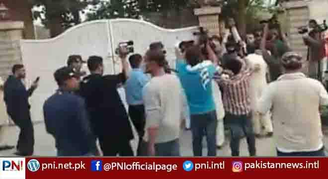 کارکنوں نے ہاتھوں میں لوٹے اٹھا کر احتجاج کیا اور سندھ ہاؤس کا گیٹ توڑ دیا۔ پی ٹی آئی کے مشتعل کارکنوں نے سندھ ہاؤس کا گیٹ توڑ دیا اور اندر داخل ہوگئے۔ پی ٹی آئی کے کارکنوں نے ہاتھوں میں لوٹے اٹھا رکھے ہیں اور نعرے بازی کر رہے ہیں۔ سندھ پولیس کی جانب سے پی ٹی آئی کارکنوں کو سندھ ہاؤس سے باہر نکالنے کی کوششیں کی جا رہی ہیں۔