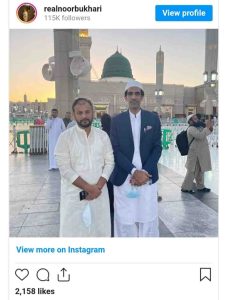 تصویر پوسٹ کرتے ہوئے سابقہ اداکارہ کے کیپشن سے یہ قیاس کیا جانے لگا ہے کہ عون چوہدری اس وقت مدینہ پاک میں ہیں۔ نور بخاری نے لکھا کہ : جِسے چاہا در پر بُلا لیا، جِسے چاہا اپنا بنالیا، یہ بڑے کرم کے ہیں فیصلے یہ بڑے نصیب کی بات ہے، میرے نصف بہتر مدینہ شریف میں ماشاءاللہ، میری روح وہیں ساتھ ہے۔ سیاسی حلقوں میں اس حوالے سے بہت مثبت تبصرے کیے جا رہے ہیں۔۔۔۔