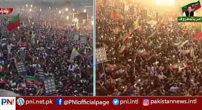 اسلام آباد (پی این آئی ) پاکستان تحریک انصاف نےپریڈ گراؤنڈ اسلام آباد میں عوامی طاقت کا مظاہرہ کر دیا ، پریڈ گراؤنڈ میں پاکستان تحریک انصاف کے سپوٹران بڑی تعداد میں موجود ہیں ۔ جبکہ سٹیج پر موجود پی ٹی آئی کے نوجوان رہنما فیصل جاوید خان کا کہنا ہے کہ حسن ابدال اور چکری تک ٹریفک بلاک ہےاور جلسے کے شرکا کی تعداد 20لاکھ کراس کر چکی ہے۔ جبکہ وفاقی وزرا و دیگر اہم شخصیات بھی موجود ہیں ۔ امر بالمعروف کے عنوان سے پی ٹی آئی کے جلسے میں حکومتی وزراء اور ارکان خطاب کر رہے ہیں۔