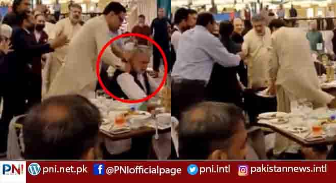 اسلام آباد (پی این آئی) وفاقی دارالحکومت کے معروف ہوٹل میریٹ میں پاکستان پیپلز پارٹی کے رہنماؤں نے بزرگ شہری کو تشدد کا نشانہ بنا ڈالا۔نجی ٹی وی کے مطابق واقعہ افطاری کے وقت میریٹ ہوٹل میں پیش آیا جہاں ایک بزرگ شہری نے پاکستان تحریک انصاف کے منحرف رہنما نور عالم خان، ندیم افضل چن، مصطیٰ نواز کھوکھر اور فیصل کریم کنڈی کو دیکھ کر “غدار” کے نعرے لگائے۔شہری کی نعرے بازی پر سیاسی رہنما آپے سے باہر ہوگئے۔
