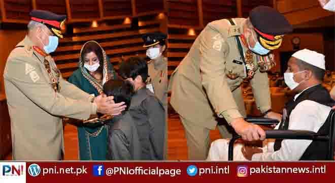 یہ انہی آفیسرز، جے سی اوزاور جوانوں کے خون کی قربانی کے ذریعے ممکن ہوا ہے۔میں ہمیشہ یہ کہتا ہوں کہ ہمارے اصل ہیرویہ ہمارے شہید ہیں، یہ ہمارے غازی ہیں اور جو قومیں اپنے شہیدوں کو یا ہیروز کو بھول جاتی ہیں، وہ قومیں مٹ جایا کرتی ہیں۔ایک شہید جو ہے جب تک دنیا قائم ہے، اس کا نام ہمیشہ چمکتا رہے گا۔اس نے دنیا میں بھی اپنا نام کمالیا اور آخرت میں بھی اپنا نام کما لیا۔جیسا کہ فرمایا گیا ہے کہ شہید کے خون کا قطرہ گرنے سے پہلے ہی اس کی بخشش ہو جاتی ہے۔وہ نہ صرف اپنے آپ کو بخشوا لیتا ہے لیکن اپنے ورثا کیلئے بھی جنت کے راستے کھول دیتا ہے۔انہوں نے کہاکہ کوئی قوم، کوئی ملک اپنے شہدا کی قربانی کا صِلہ پیش نہیں کر سکتی۔ کوئی مادی قوت، دولت، پیسہ اس کا نعم البدل نہیں ہو سکتی۔ہماری ذمہ داری ہے کہ ہم شہدا کے ورثا کی دیکھ بھال کریں، ان کی فیملی کی دیکھ بھال کریں، ان کی بیواں کی، ان کے والدین کی دیکھ بھال کریں، ان کے بچوں کی دیکھ بھال کریں۔جو انشا اللہ ہم کریں گے۔ لیکن میں یہ مانتا ہوں کہ کوئی بھی دیکھ بھال اور کوئی بھی مراعات شہادت کا نعم البدل نہیں ہو سکتی۔ایک والد کیلئے، ایک والدہ کیلئے، جب تک وہ اس دنیا میں زندہ ہیں اور جب تک وہ اس دنیا سے نہیں جاتے، ان کا بچہ ان کی نظر کے سامنے ضرور روز آئے گا، روز ان کو یاد آئے گا۔ ایک بیوہ جس کا خاوند اس کے ہاتھ سے چلا گیا اور وہ بچے جن کے سر سے باپ کی شفقت اٹھ گئی ہے، ان کو بھی اس کی کمی ضرور محسوس ہو گی اور اس کا کوئی بھی نعم البدل نہیں ہو سکتا۔ لیکن میں کہتا ہوں کہ یہ ملک آپ لوگوں کی قربانیوں کی وجہ سے زندہ ہے اور میں آپ کو سلام پیش کرتا ہوں کہ آپ لوگوں کی قربانیوں کی وجہ سے آج پاکستان محفوظ ہے۔یہ فوج ہی ہے جو صبح سے لیکر شام تک پاکستان کے ہر چپہ، کیا سیلاب ہو، کیا طوفان ہو، کیازلزلہ ہو یا کووڈہو۔ہر جگہ فوج آپ کو ملے گی۔ کوئی حادثہ ہو فوج بتائے بغیر وہاں پر پہنچ جاتی ہے۔آرمی چیف نے کہاکہ آجکل بلوچستان میں کئی جگہ پر ہیضہ پھیلاہوا ہے وہاں پر پانی کی کمی ہے اور میرے بتائے بغیر وہاں پر فوج پہنچ کر ان لوگوں کی خدمت کر رہی ہے، صاف پانی مہیا کر رہی ہے۔اور ہم اپنی اس خدمت پر، اس کام پر ہم اپنا فخر محسوس کرتے ہیں۔میں اپنے شہدا کے ورثا کو یقین دلاتا ہوں کہ انشا اللہ آپ کو کبھی مایوس نہیں کریں گے۔جنرل قمر جاوید باجوہ نے کہاکہ دنیا مجھے کہتی ہے کہ یہ واحد فوج ہے جس نے دہشتگردی کا خاتمہ کیا ہے۔تو وہ یہ کیا کہتے ہیں کہ کیسے کیا آپ نے، باقی ملک فیل ہو گئے۔تو یہ کیا وجہ ہے کہ پاکستان میں ایسی کیا خوبی ہے؟ تو میں ہمیشہ بتاتا ہوں کہ ہمارے پاس ایسی مائیں ہیں جو اپنے لختِ جگر، ہماری ایسی بہنیں ہیں جو اپنے شوہر اور ایسے بچے ہیں جو اپنے والد اس ملک پر قربان کرنے کے لئے تیار رہتے ہیں اور جب تک ایسی ہماری مائیں اورہماری بہنیں موجود ہیں۔تو مجھے اس میں کوئی شک نہیں ہے کہ پاکستان کو کوئی نقصان نہیں پہنچا سکتا۔۔۔۔۔