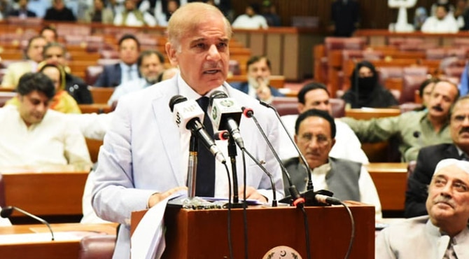 نجی ٹی وی کے مطابق وزیراعظم شہباز شریف نے قومی اسمبلی کے اجلاس سے خطاب میں سابق وزیراعظم کو مخاطب کرتے ہوئے کہا کہ عمران نیازی کسی بھول میں نہ رہنا حکومت کی معیاد ایک سال 2 ماہ باقی ہے، اس جتھے کے سربراہ کو واضح کرتا ہوں تمہاری ڈکٹیشن نہیں چلےگی، یہ فیصلہ ایوان کرے گا کہ کب الیکشن کرانا ہے، اگر تمہارا خیال ہے کہ بلیک میل یا ڈکٹیٹ کرلو گے تو اپنے گھر میں کرو، بات چیت کے دروازے کھلے ہیں، میں کمیٹی بناسکتا ہوں۔