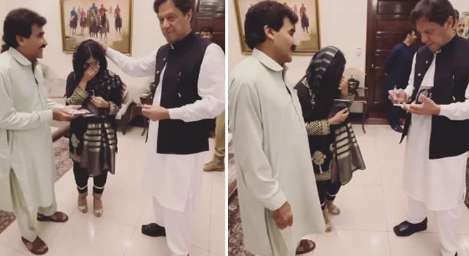 اسلام آباد (پی این آئی )عمران خان کے لیے لکھی گئی کتاب ‘Why I have chosen Imran Khan ‘ کی مصنفہ انفال خان نے سابق وزیراعظم سے ان کی رہائش گاہ پر ملاقات کی۔نجی ٹی وی جیو نیوز کے مطابق عمران خان کے سوشل میڈیا اکاؤنٹس پر ایک ویڈیو شیئر کی گئی ہے جس میں چیئرمین پی ٹی آئی کو مصنفہ اور ان کے والد سے ملاقات کرتے دیکھا جاسکتا ہے۔ ویڈیو میں عمران خان انفال کی لکھی جانے والی کتاب پر انہیں آٹو گراف دیتے بھی دیکھے جاسکتے ہیں جسے دیکھ کر مصنفہ آبدیدہ ہوگئیں۔عمران خان نے آٹوگراف دینے کے بعد انفال سے ایک کتاب پڑھنے کے لیے بھی مانگی۔سوشل میڈیا پر چلنے والے دعوؤں کے مطابق عمران خان پر کتاب لکھنے والی مصنفہ کی عمر 17 سال بتائی جاتی ہے۔